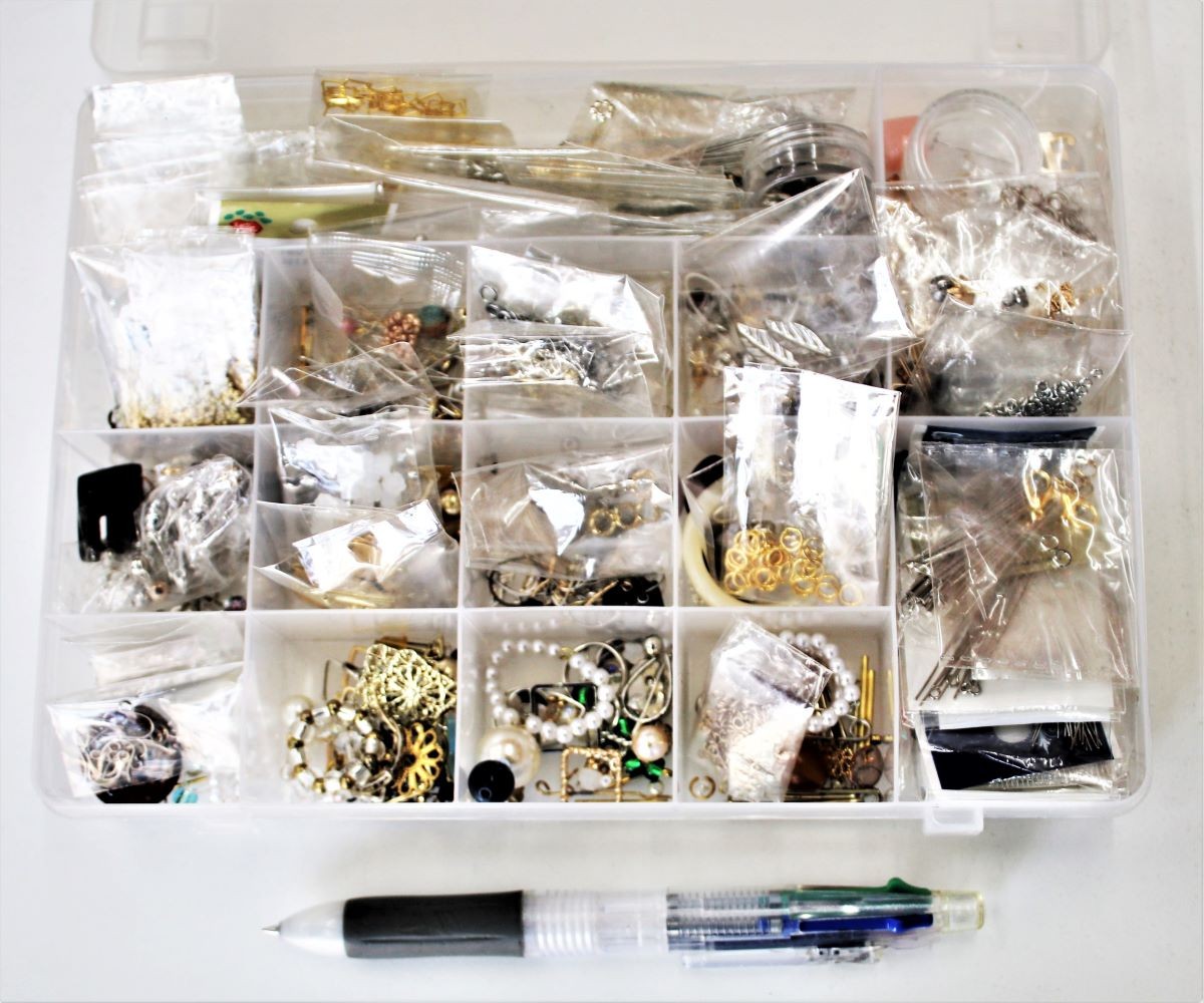 製作者のご紹介 ; 団地内にお住いのMさん(女性)です。Mさんは約4年前から本格的にアクセサリー作りを始められました。きっかけは自分が身につけるものを自分で作ろうという思いと、家の中で無心になれる趣味として始められたそうですが、続けるうちに作品もどんどん増え、欲しいと言われる方にプレゼントしたり、こんなものを作ってほしいという方にご希望のデザインで作ってあげたりされているそうです。