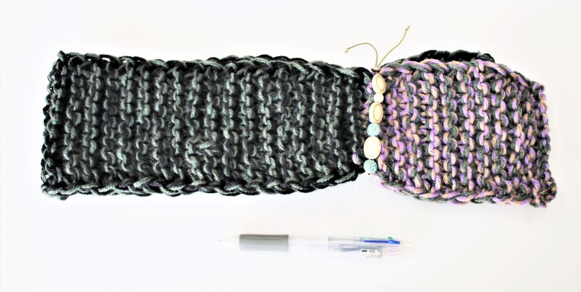 一方の編み物の方ですが、機械編みではなくすべて手編みされています。一般的なカギ針や棒を使った手編みです。
