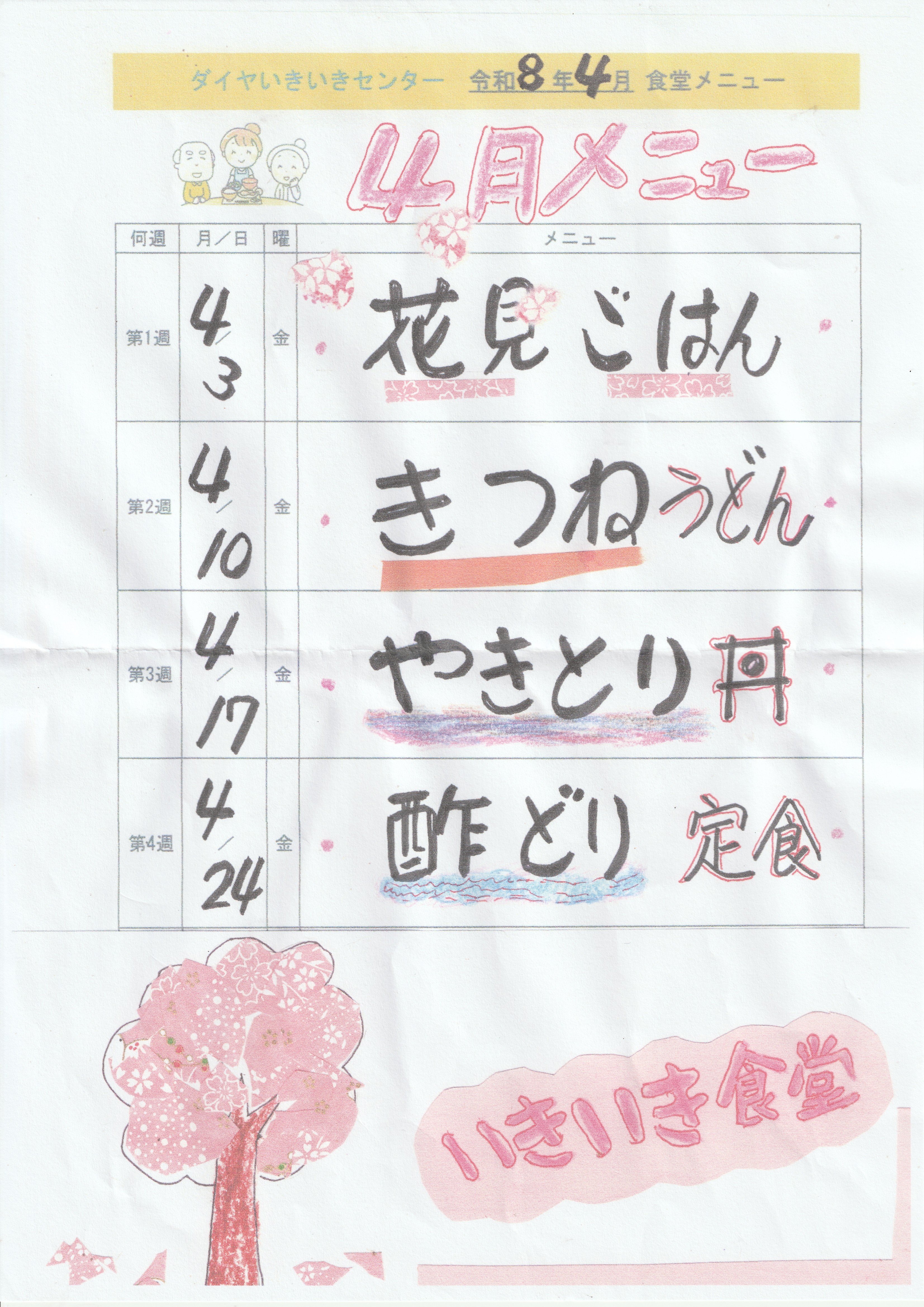 令和8年4月の移動販売カレンダーをお知らせします ≫
