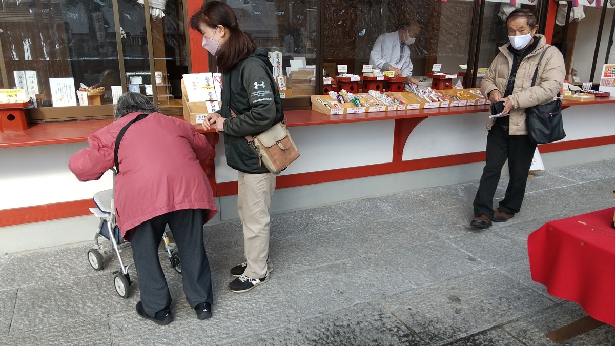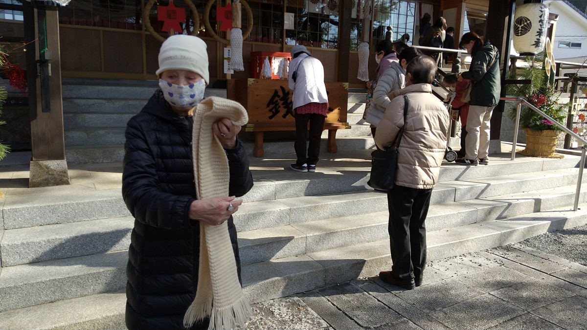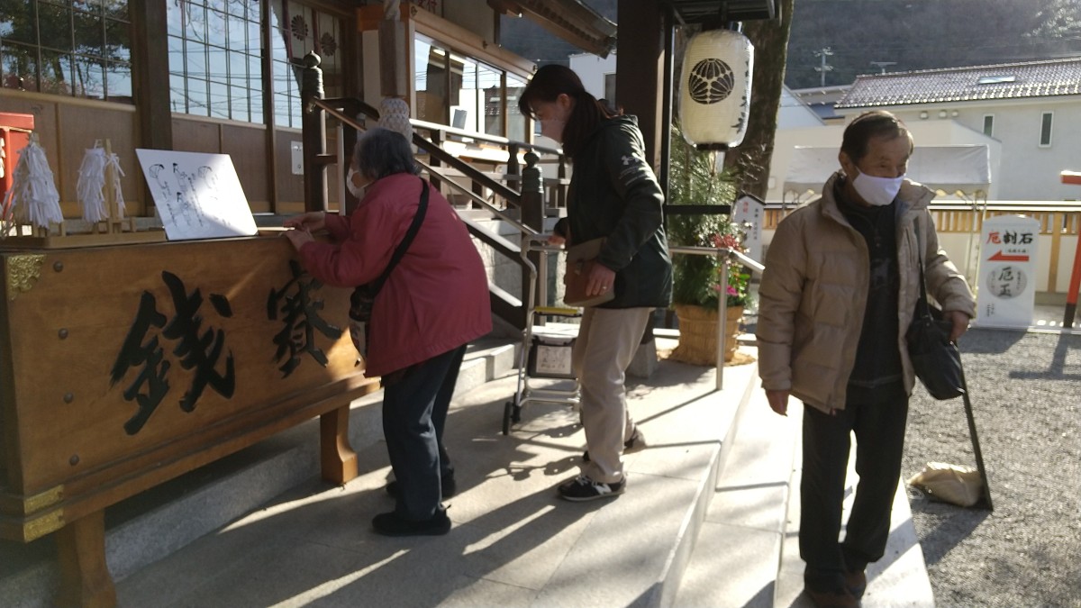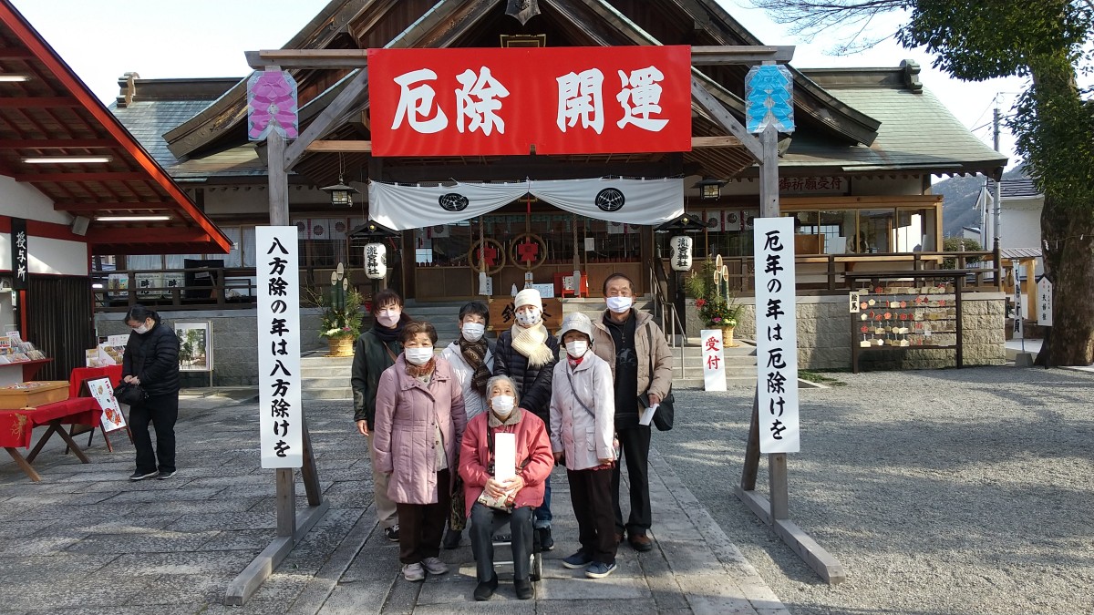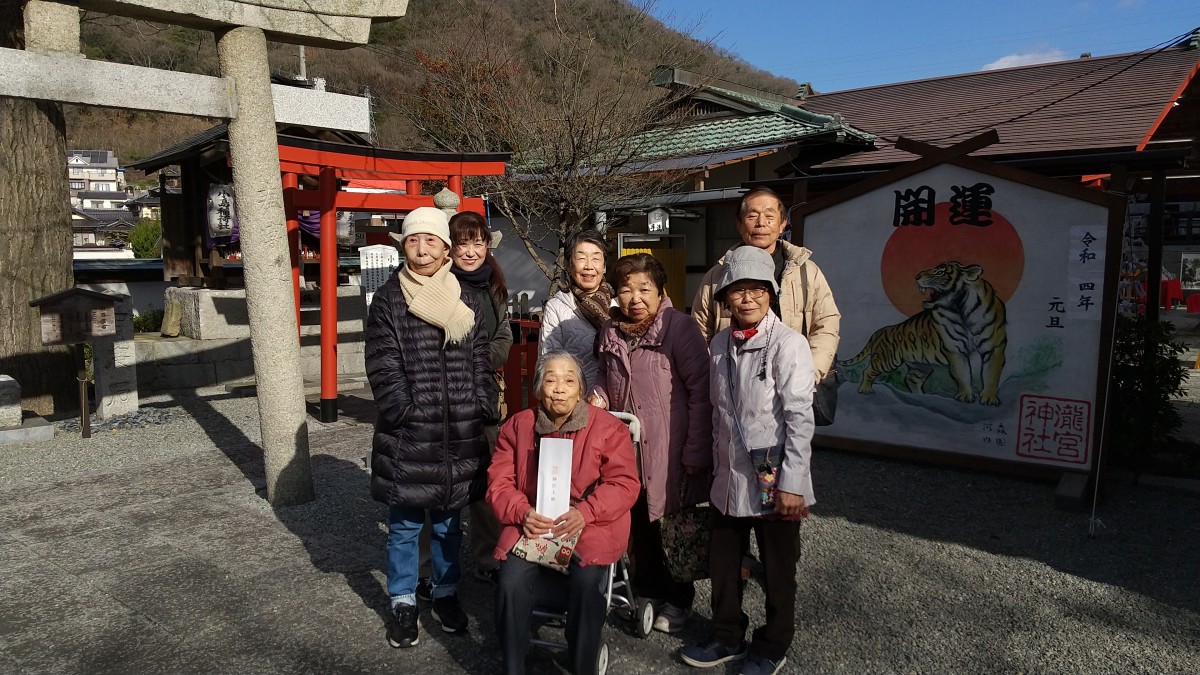 今日はとても良いお天気で割に暖かい初詣となりました。今年の初詣者は昨年より多かったようです。利用者5人と関係者で 年初にあたりそれぞれおみくじを引いたり健康、安全など祈願をしました。