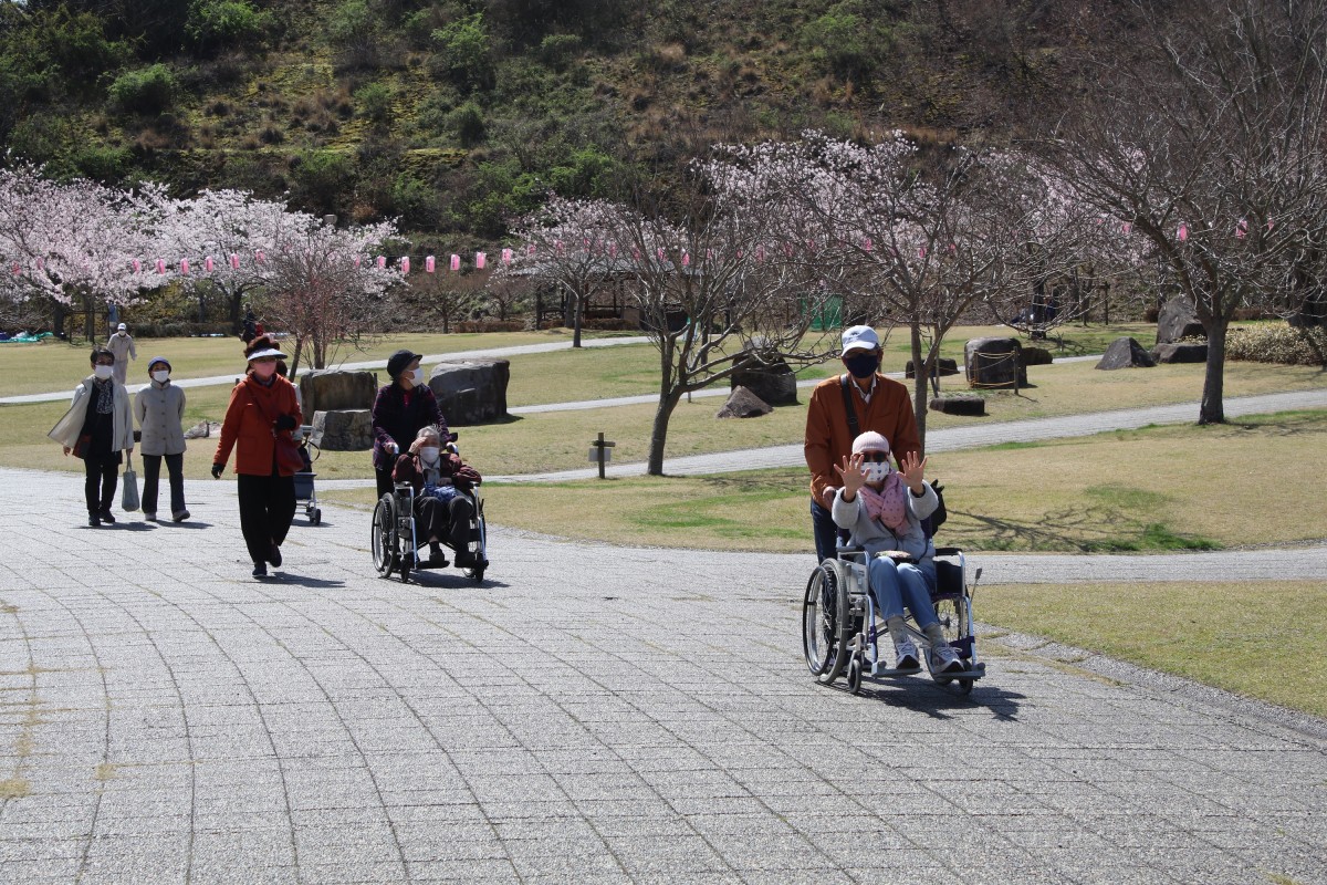 今日も昨年と同様センター利用者の皆さんと竹原バンブー総合公園の花見に行きました。園内には約1300本の桜が満開に近い状態。青空の下ゆっくり散策しながら花見を満喫しました。